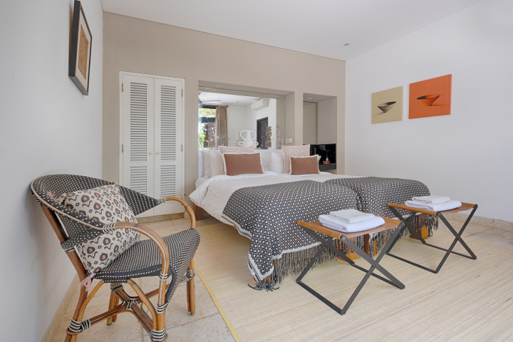 Можно арендовать весь комплекс 6 спален (12 взрослых + 3 детей), отдельно 4х спальную виллу или отдельно 2х спальную виллу.