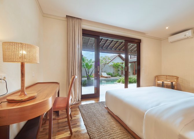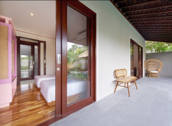 На каждой вилле своя приватная территория с бассейном и шезлонгами для загара.