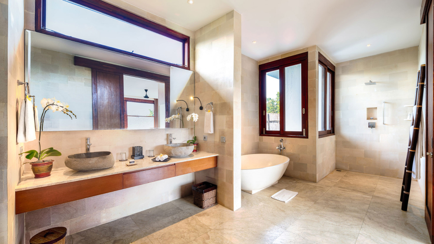 На вилле пять комфортных спален с ванными комнатами: две с кроватями king-size и 3 c двумя односпальными кроватями (могут быть соединены вместе в кровать king size).